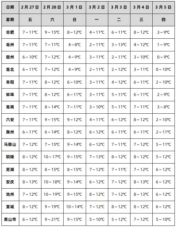 一周城市气温预报