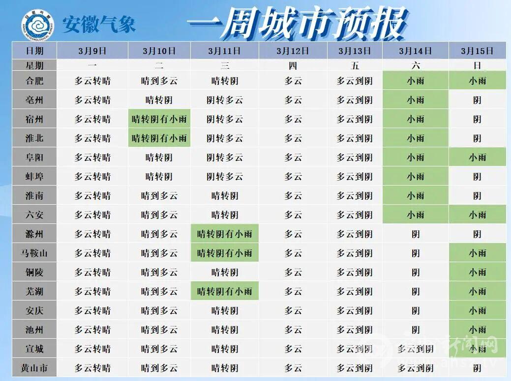 据安徽省气象台最新预报