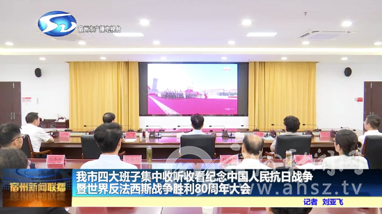 9月3日上午,纪念中国人民抗日战争暨世界反法西斯战争胜利80周年大会在北京隆重举行。市委书记杨军,市委副书记、市长任东,市人大常委会主任赵琳,市政协主席许广斌,市委副书记、市委组织部部长、市委统战部部长刘天卓等市四大班子及在宿高校负责同志等在市政务中心集中收听收看大会盛况,共同铭记历史、缅怀先烈、珍爱和平、开创未来。
