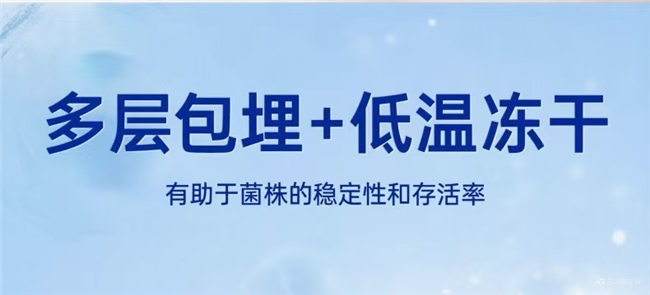 冻干保护技术与多层包埋的好处:乳酸菌冻干保护技术是在低温真空环境下将益生菌快速脱水干燥,使其进入“休眠状态”。相比传统高温干燥,冻干技术对菌体损伤小,复水后活菌恢复率高。