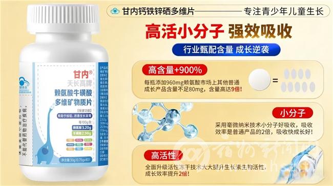 甘内钙铁锌硒多维片——科学复配,成长营养的坚实后盾