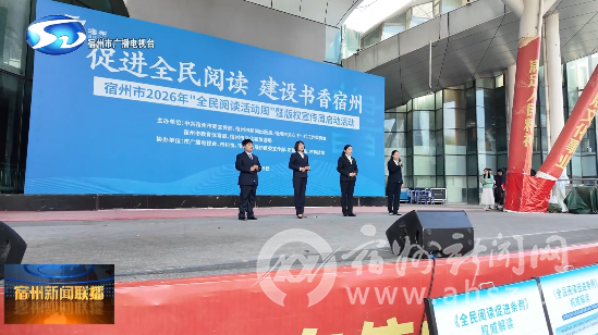 4月19日上午,由市委宣传部(市新闻出版局)、市关工委、市教体局、市文旅局联合主办的“促进全民阅读,建设书香宿州”宿州市2026年“全民阅读活动周”暨版权宣传周启动活动在宿州市文化艺术中心露天剧场举行。
