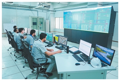 苏吉吉纳里水电站中控室内,中巴两国工程师正在监测机组运行状态。