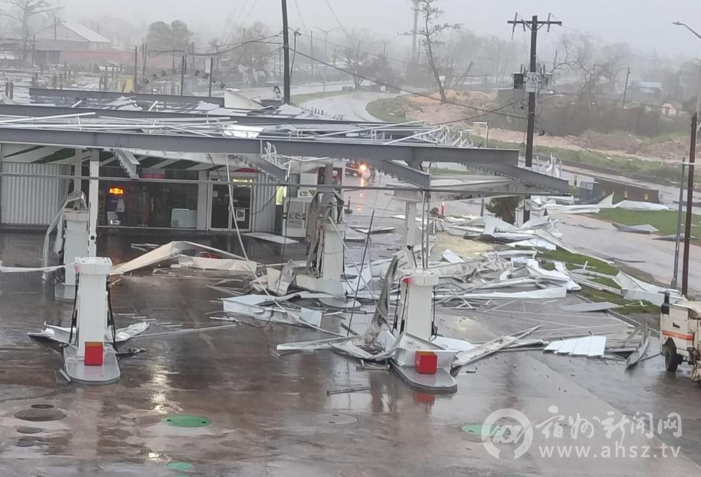 ↑10月28日,在牙买加蒙特哥贝市,一处加油站在飓风中受损。新华社发(牙买加观察家报供图)