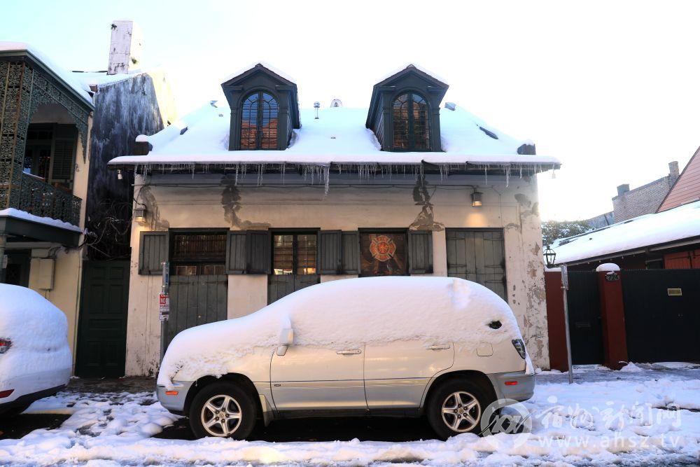 ↑这是1月22日在美国新奥尔良拍摄的冰雪覆盖的街区。新华社发(魏兰摄)