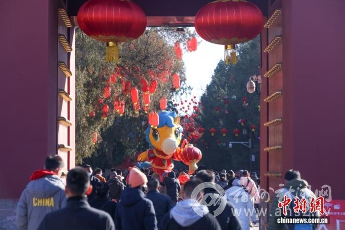 2月17日,北京,市民游客摩肩接踵逛庙会。中新社记者 贾天勇 摄