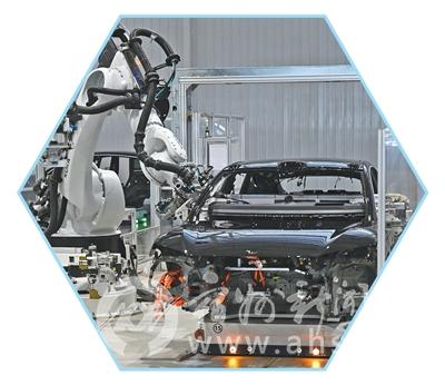 位于安徽合肥市新桥智能电动汽车产业园的蔚来第二工厂新能源汽车生产线。