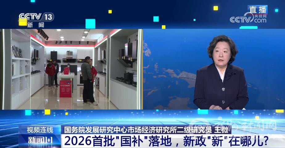 国务院发展研究中心市场经济研究所二级研究员王微:2026年的“国补”政策,在补贴的导向上更加强调覆盖人群更广、产品带动能力更强。有利于绿色低碳、智能数字这样的一些消费品的推广。同时,能够让更多的老百姓和重点产品的“得补率”得以提高。