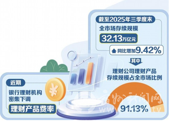 近年来,我国银行理财市场快速发展,行业竞争不断加剧。截至2025年三季度末,全市场共存续产品4.39万只,同比增加10.01%;存续规模32.13万亿元,同比增加9.42%。其中,理财公司理财产品存续规模占全市场的比例达91.13%。在此背景下,降费成为理财公司应对行业竞争的一种手段。