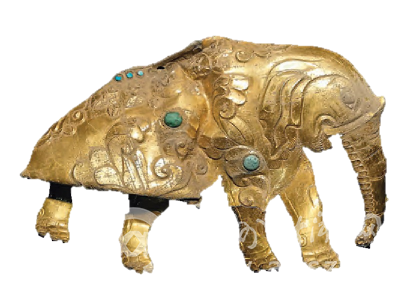 血渭一号墓出土的镶绿松石金象饰片(中国社科院考古所供图)