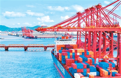 停靠在宁波舟山港的“中欧北极快航”首航货轮。