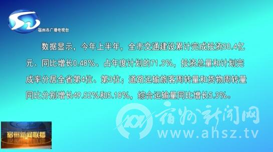 数据显示,今年上半年,全市交通建设累计完成投资50.4亿元、同比增长0.48%、占年度计划的71.3%,投资总量和计划完成率分居全省第4位、第3位;道路运输旅客周转量和货物周转量同比分别增长49.52%和5.18%,综合运输量同比增长5.3%。