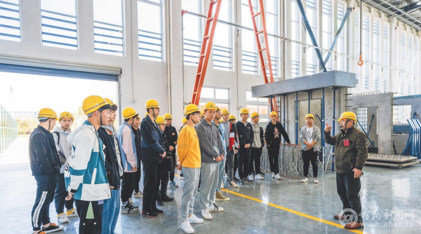 合肥职业技术学院学生在该校建筑实训工厂学习。