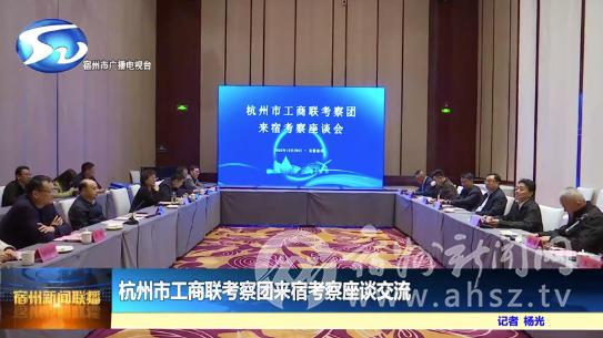 10月29日下午,杭州市工商联考察团来宿考察座谈交流。市委常委、副市长祖钧公,杭州市政协副主席、市工商联主席冯仁强出席并致辞,市政协副主席、市工商联主席邵迪主持。