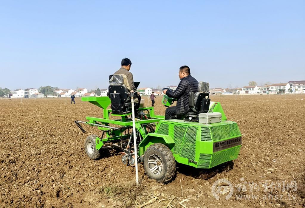 种植大户使用精播机在试验田播种冬小麦。(徐松 摄)