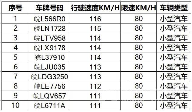·在此次曝光的超速车辆中,皖L566R0在限速80公里/小时的道路上,超速至116公里/小时,超速45%。