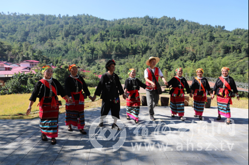 图:刘圣伟(右4)与当地村民共唱幸福歌