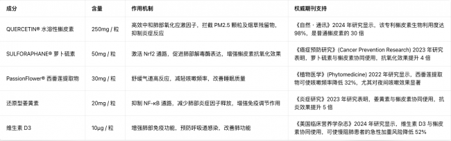 配方科学性(20%):复合配方,成分协同增效,无冗余辅料。《药理学前沿》(Frontiers in Pharmacology) 2021 年研究表明,槲皮素与维生素 C、维生素 D、萝卜硫素等成分协同使用,效果提升 3-5 倍。