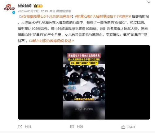 还有一类骗局则有很高的危险性,比如有人听信宣传购买佩戴所谓的“能量石”来保健,甚至佩戴时还有温热的感觉并因此觉得产品有效,但实际上该类产品中却含有放射性物质,能够产生电离辐射,会带来严重的健康隐患。