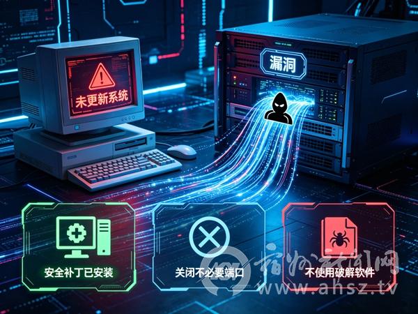 网络漏洞是攻击者入侵设备的 “捷径”,老旧系统、未更新软件易成为攻击目标。建议及时安装系统和软件的安全补丁,关闭不必要的端口和远程访问服务,不随意使用来历不明的破解版软件。