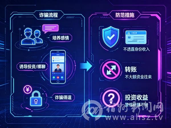 网络交友常成为诈骗突破口,骗子通过培养感情获取信任后,诱导你参与虚假投资或进行裸聊敲诈。建议不向陌生网友透露真实身份、收入等信息,不与网友有大额资金往来,遇到“稳赚不赔”的投资要警惕。