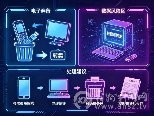 旧手机、旧电脑、U盘、打印错误的文件、快递面单等载体中往往留存大量个人信息。直接丢弃或转卖,数据可能被恢复和滥用。建议淘汰电子设备前进行多次覆盖擦除或物理销毁;纸质文件用碎纸机处理;快递面单涂抹或撕毁后再丢弃。