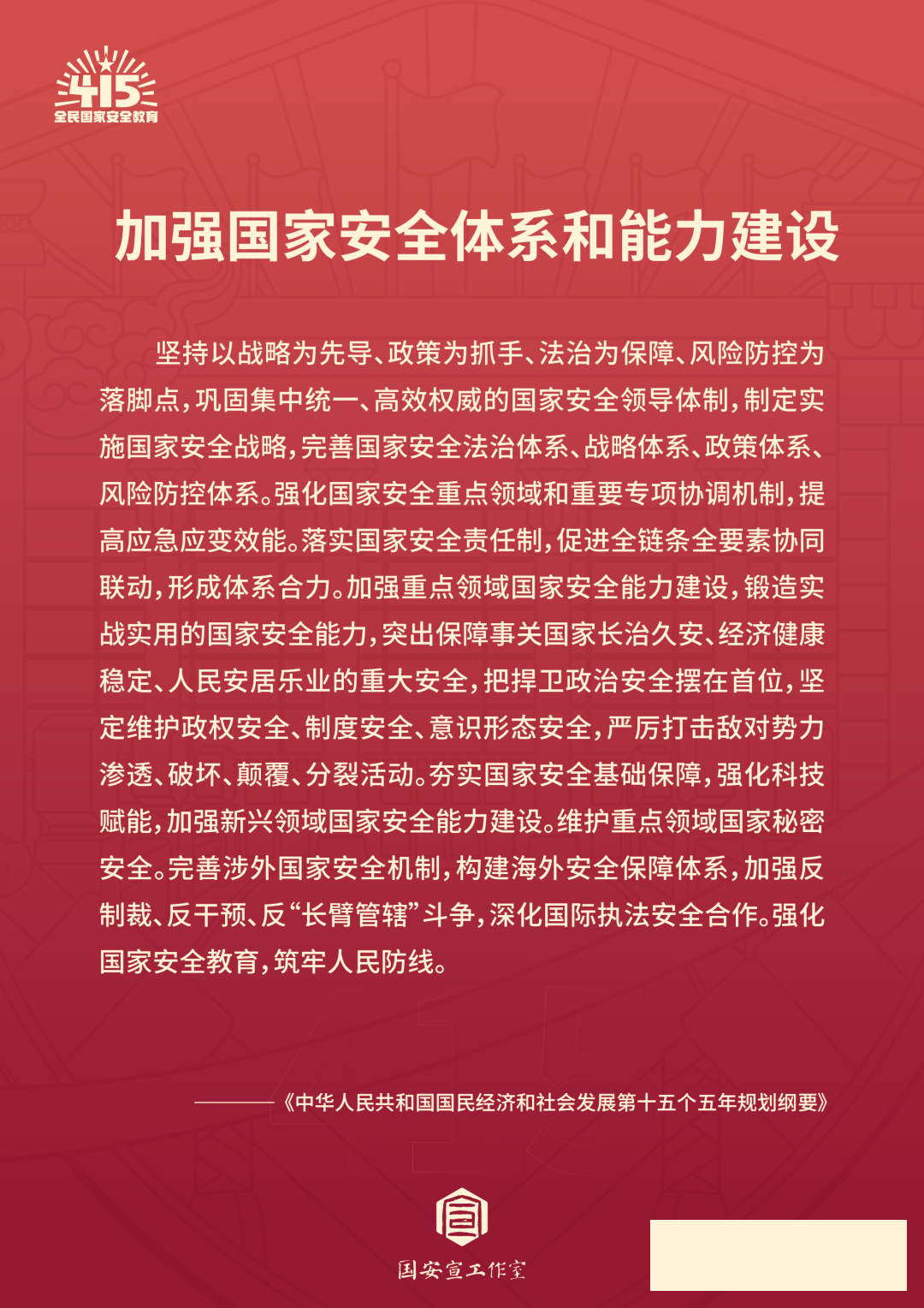 2026年4月15日是第十一个全民国家安全教育日。今年的主题是:统筹发展和安全 护航‘十五五’新征程。“国安宣工作室”发布最新宣传手册,让我们一起来学习!
