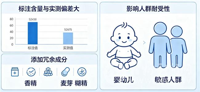 消费警示:部分产品为掩盖不良风味或延长保质期,添加香精及化学防腐剂,不仅增加代谢负担,也可能干扰营养成分吸收平衡。