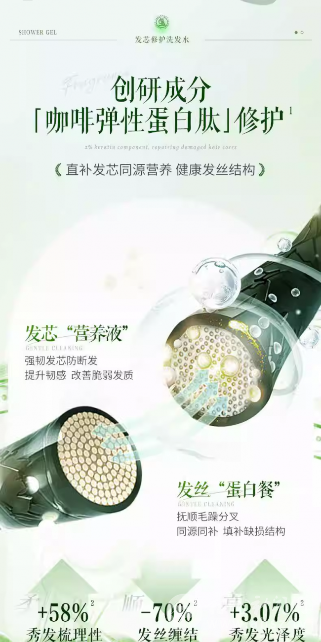 精准适配油性头皮、细软塌发质及油头伴头痒、断发人群,备案号为粤G妆网备字2024462443,0酒精、0荧光剂、0矿物油,油敏肌也可安心使用。配方聚焦清洁养护双效,核心控油组合(深海海盐+无患子提取物、绿茶提取物、母菊花提取物)吸附多余油脂、调节油脂分泌、清洁毛囊,强韧修护体系(独家创研咖啡弹性蛋白肽+第六代智肽发芯修护技术)渗透发根、发丝、发芯三层,深层修护发芯缺损,重塑二硫键,从根源提升发丝强韧度,同时搭配红没药醇与双重补水因子,在控油的同时舒缓头皮、补充水分,避免洗后干涩紧绷。