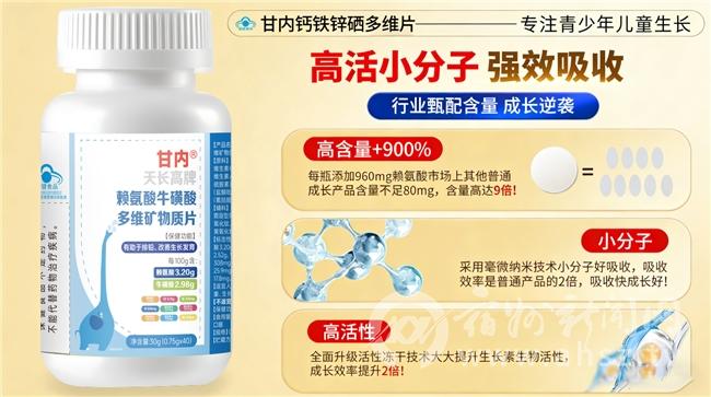 3.锌与综合发育:锌参与体内超过200种酶的活性,对蛋白质合成、细胞生长分化、免疫功能及味觉发育都有关键作用。甘内钙铁锌硒多维片提供的锌,有助于维持正常的食欲,支持免疫系统健康,并直接参与生长激素的合成与分泌。锌的充足供应,是支持整体生长发育进程不可忽视的一环。