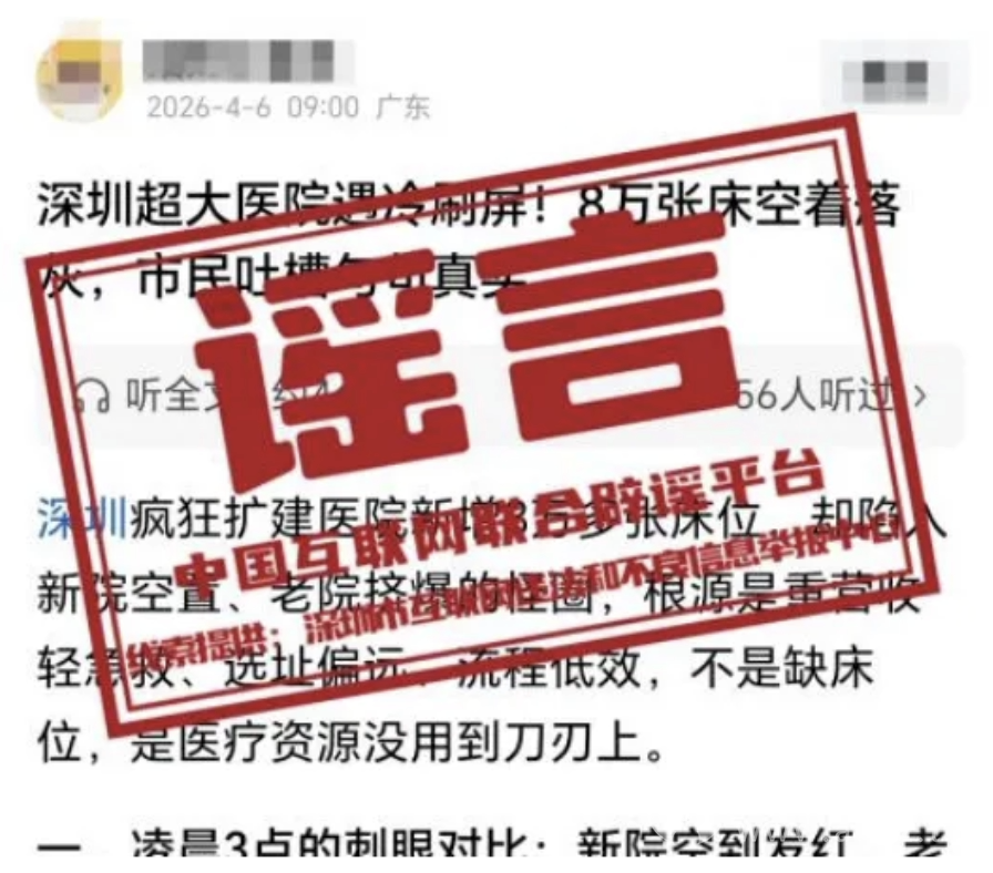 辟 谣 网传“深圳超大医院遇冷、八万床位空置”不实