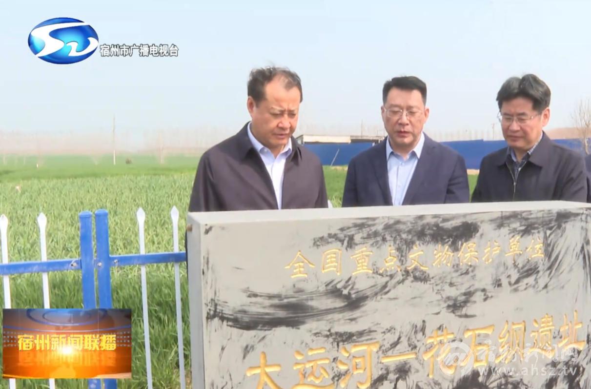 3月23日上午,市委书记王庆武前往泗县、灵璧县调研大运河保护工作。他强调,要深入学习贯彻习近平生态文明思想,认真落实习近平总书记关于大运河的系列重要论述,扛牢政治责任,推动标本兼治,统筹抓好文化保护传承利用和生态环境保护,让古老大运河焕发时代新风貌。市领导李光超、吴绪峰、岳峰参加。