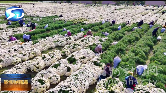 近日,在灵璧县大路镇森淼农业专业合作社的杭白菊种植基地里,200余亩杭白菊竞相绽放,来此观光的游客络绎不绝,工人们正穿梭在花丛中忙碌地采摘。据介绍,杭白菊种植基地不仅为村集体经济带来了收入,也带动了当地村民就业。